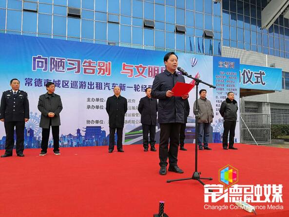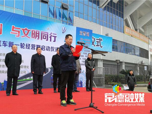 沈习淼宣布“市城区出租车新一轮经营期运营启动” 。市委宣传部、市交通运输局、市交警支队、市运管处、市公安局武陵分局等部门相关负责人,以及行风监督员、出租汽车企业及个体经营者、出租汽车驾驶员代表近500人与200台焕然一新的出租汽车参加了启动仪式。