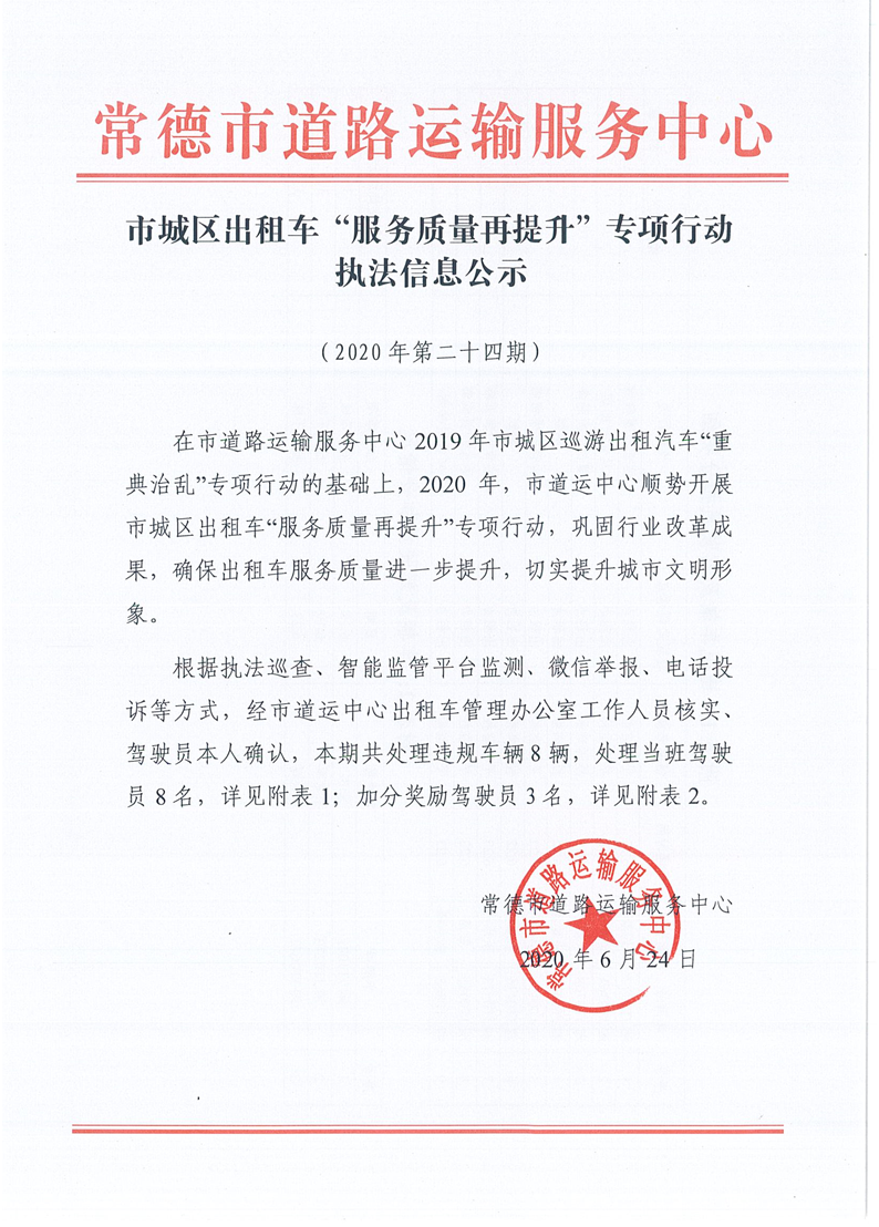 市城区出租车“服务质量再提升”专项行动执法信息公示