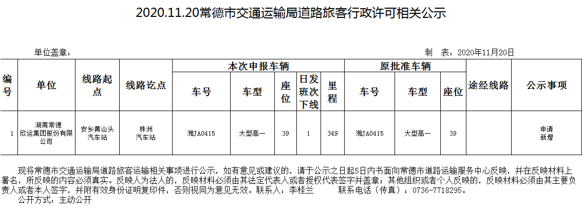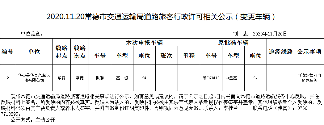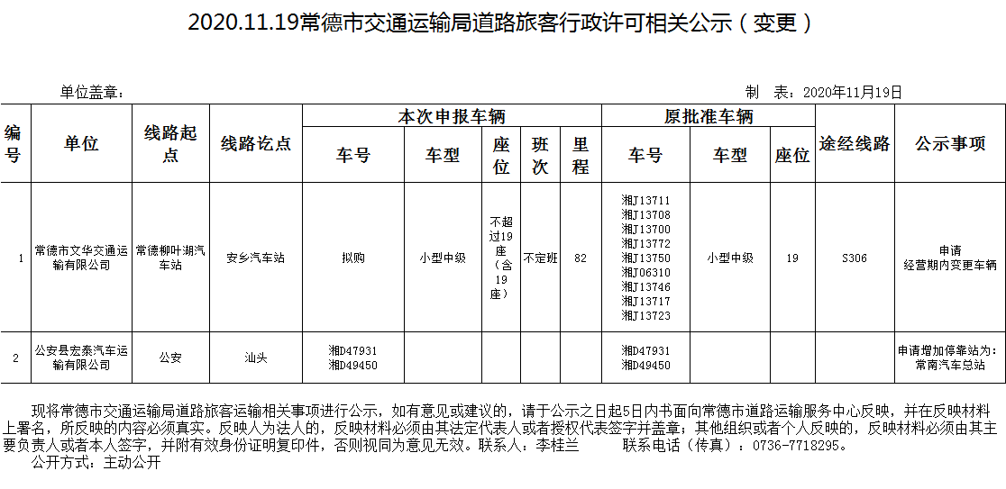 常德市交通运输局道路旅客行政许可相关公示(3)