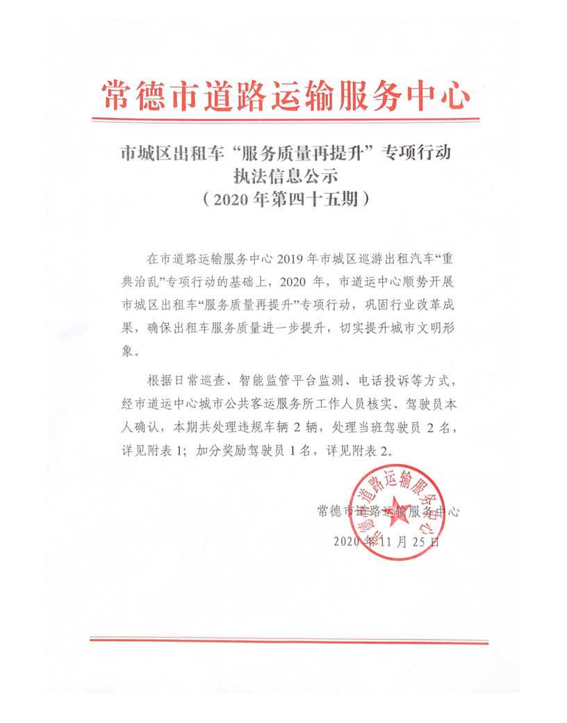 市城区出租车“服务质量再提升”专项行动执法信息公示(45)