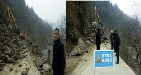 X005线雁池乡水晶庙村路段发生二次山体垮塌,交通中断,乱石不断滚落,经交通运输部门现场勘查,夜间施工排险存在重大安全隐患。今天上午,交通运输局通过四个小时的抢修,现已抢通,可顺利通行。