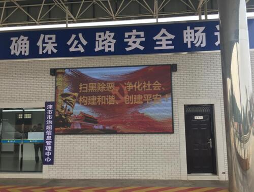 新洲超限检测站LED显示屏滚动播放扫黑除恶宣传标语