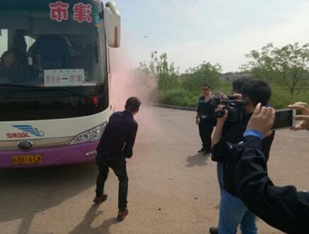 演练模拟一辆大型客运汽车行驶途中发动机突然起火冒烟,车内多名乘客被困的事故情况。演练中,驾驶员紧急靠边停车,售票员立即组织乘客有序疏散,并使用车载安全锤敲破车窗加快逃生速度。驾驶员迅速用车载灭火器对汽车燃烧部位进行灭火,售票员把乘客带至安全地点后也参与扑救,20分钟后将火源完全扑灭。随后驾驶员分别向交警 、保险公司、客运公司报告事故发生和自救情况。