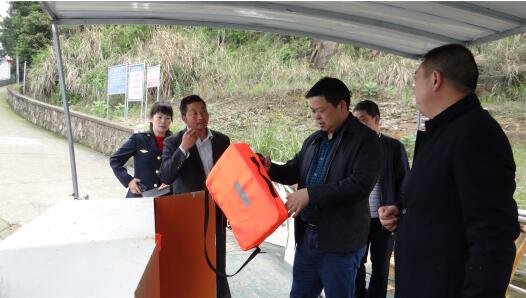 在蒙泉湖渡口,检查组对渡船配备的救生衣、灭火器的安全设施设备进行了检查,并要求渡工在渡运中要督促乘客穿(拿)救生衣,不得将渡船交给无证人员驾驶,不得在大风、大雾等不适合渡运的恶劣天气渡运,确保渡运安全。