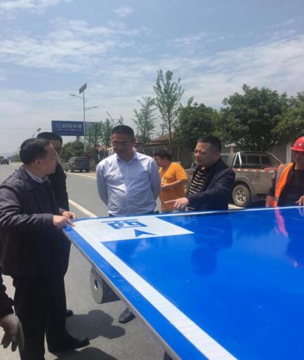 高金平一行在G353查看已完成的标志标牌情况