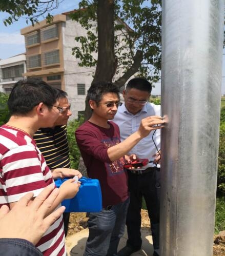 高金平(左三)一行检查标志标牌安装质量