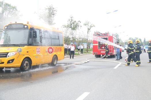 上午9时,演练活动拉开序幕。在演练现场,一辆校车突然冒出滚滚浓烟,消防车火速赶来,消防队员拉起高压水枪对着车辆灭火,约5钟后火被扑灭。随后,消防队员对参与演练的群众及司乘人员进行了灭火培训,详细讲解灭火器的使用知识,观摩人员还纷纷拿起灭火器进行了现场灭火演练。