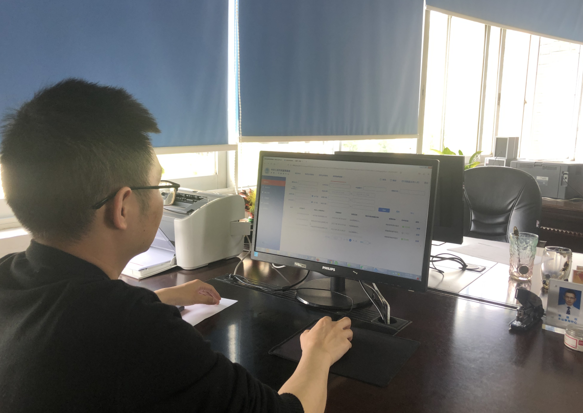 工作人员使用线上申报系统