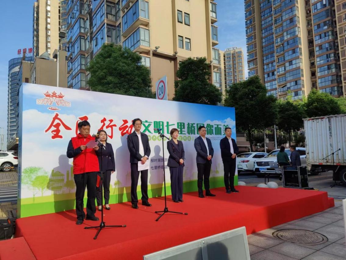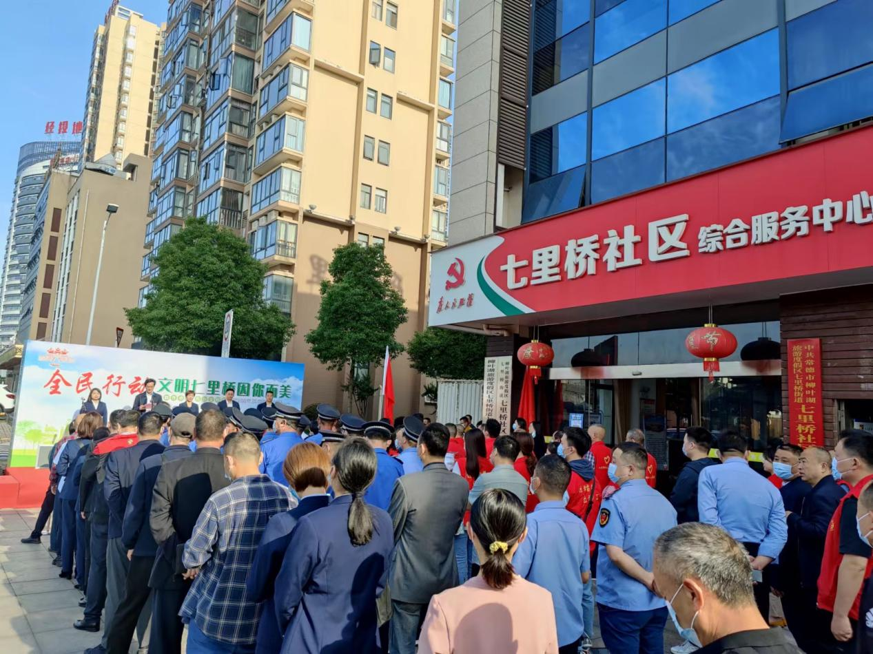 5月17日,七里桥社区启动“干群齐参与 共创文明城”志愿者进社区服务活动,柳叶湖区领导、相关市直单位、七里桥街道相关负责人参与活动。