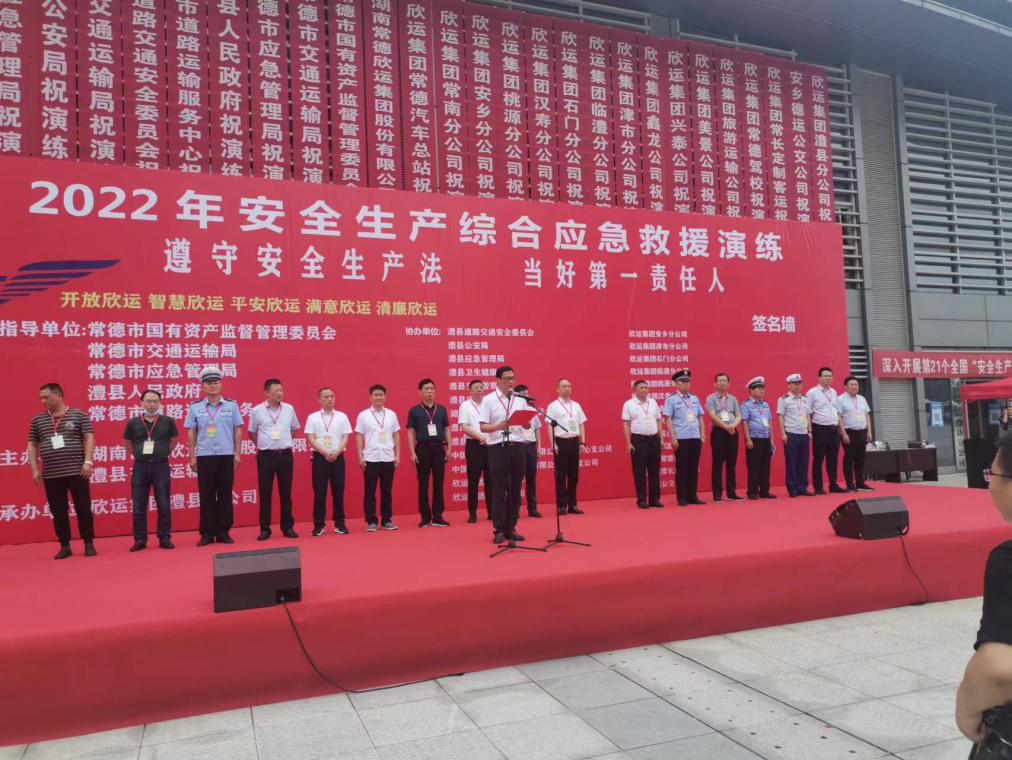 6月30日,澧县交通运输局联合常德欣运集团股份有限公司,在市国资委和市交通运输局等部门的指导下,组织开展了以“遵守安全生产法 当好第一责任人”为主题的综合应急救援演练活动,演练内容包含:机动车交通事故应急救援处置、机动车自燃发生火灾现场处置、综合客运枢纽疫情防控公共卫生事件应急处置、车站反恐防爆应急处置、车站火灾事故后消防应急疏散、灭火设施使用6个方面。