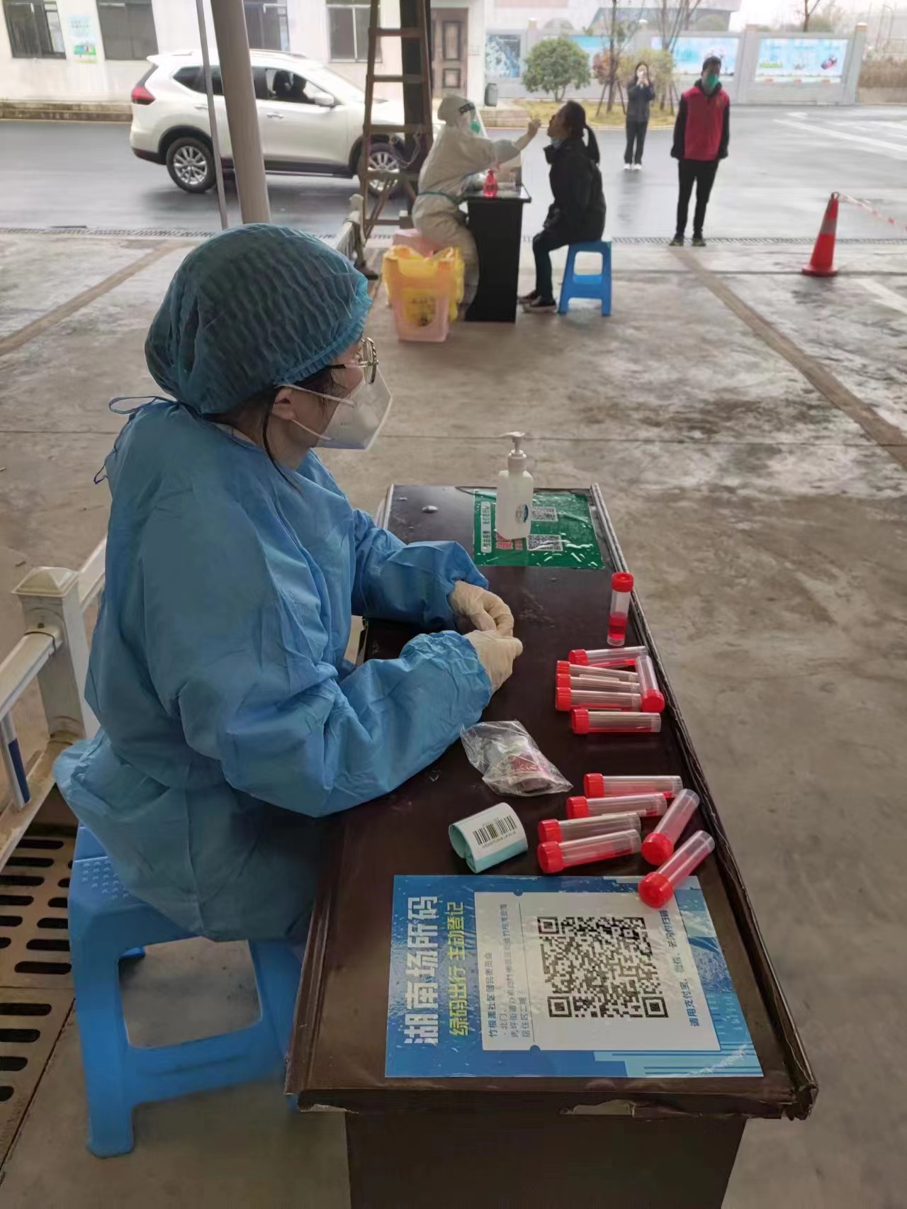 市公路建养中心党员杨萧在南坪街道竹根潭社区进行疫情防控核酸登记工作