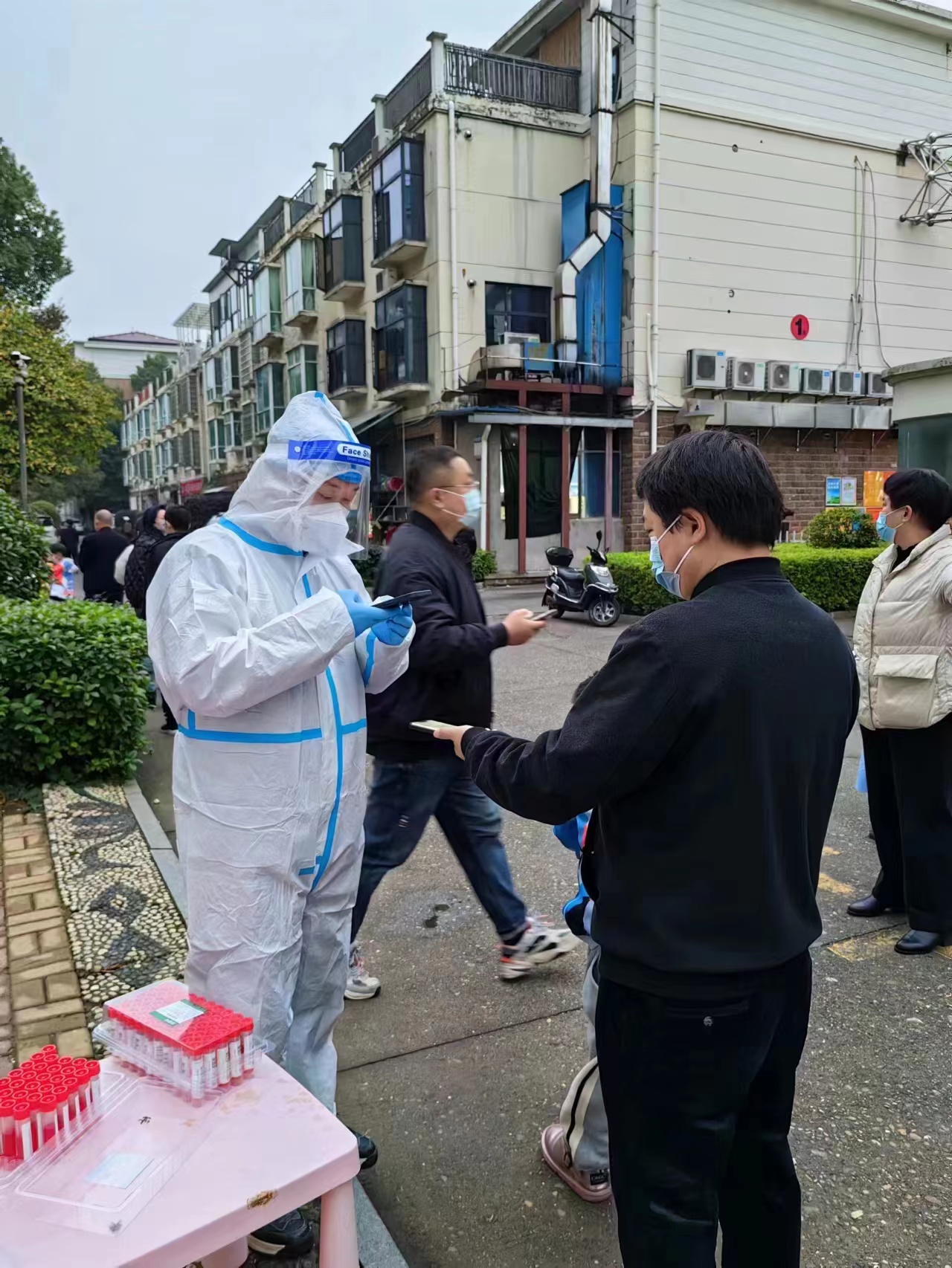市质安站党员志愿者钟郁在首创名苑小区协助医务人员和社区工作人员做好核酸采集信息录入