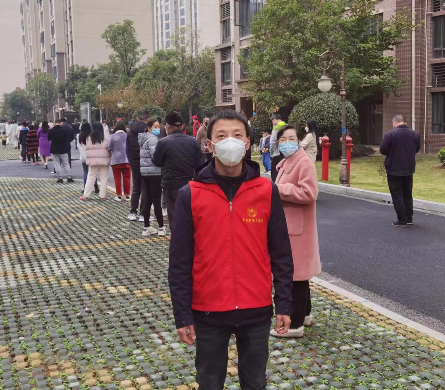 市交通执法支队党员李智勇在杨桥社区维持核酸检测现场秩序