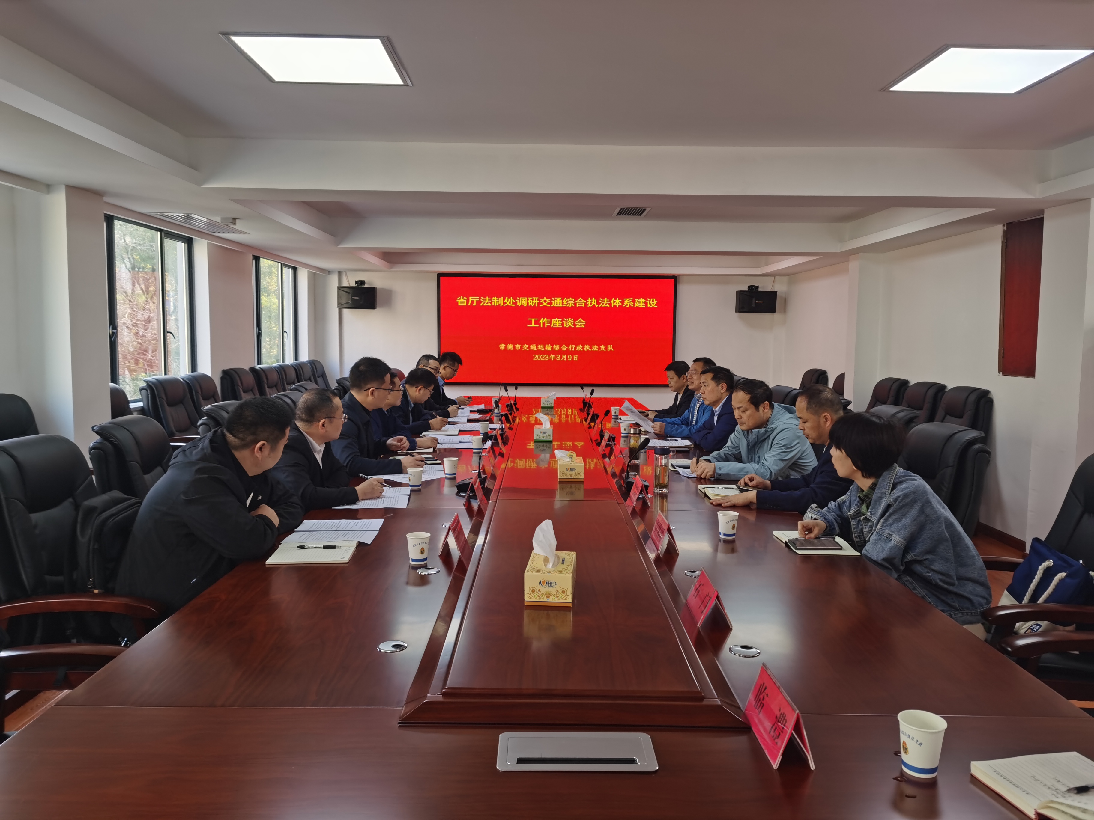 3月9日,省交通运输厅法制处副处长杨天波、省交通运输厅法制处三级主任科员唐建杨一行到常德市交通运输综合行政执法支队调研。市交通运输局党组成员、副局长彭德友,市交通运输综合行政执法支队党委委员、副支队长范志勇和党委委员、纪委书记龚德兵以及市局有关科室、相关区县交通运输局负责同志等参与调研活动。