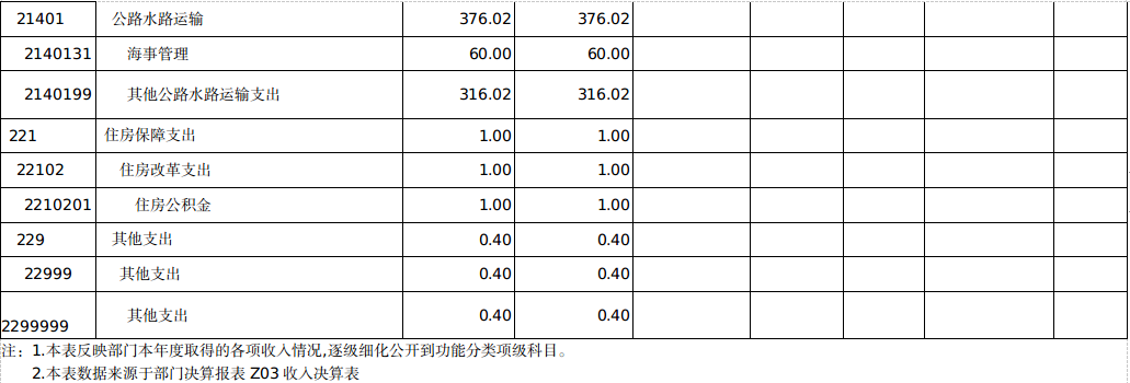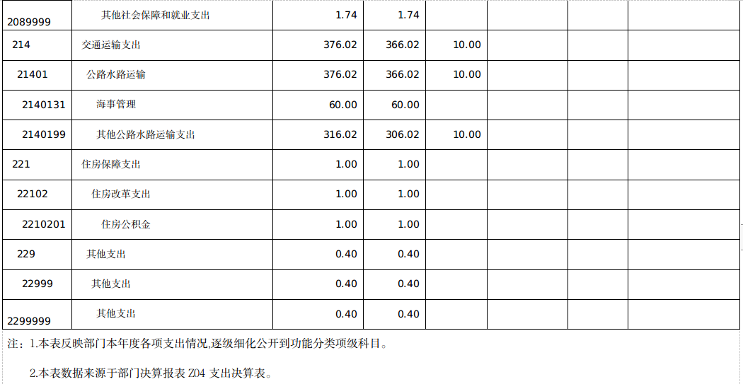 年初预算为400.64万元,支出决算为316.02万元,完成预算的78.88%,决算数小于年初预算数的主要原因是年初预算安排是“交通运输支出(类)公路水路运输(款)其他公路水路运输支出(项)”,实际在支付系统操作时列支“交通运输支出(类)公路水路运输(款)海事管理(项)”。
