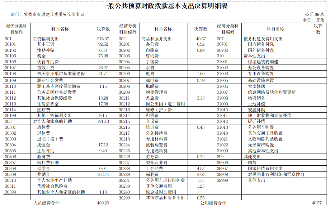 公用经费40.57万元,占基本支出的7.96%,主要包括办公费、印刷费、电费、邮电费、差旅费、培训费、劳务费、工会经费、福利费、公务用车运行维护、其他交通费用、其他商品和服务支出。