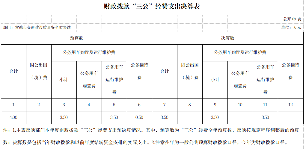 市交通建设质量安全监督站2022年“三公”经费实际支出3.5万元,较上年支出5.57万元,减少2.07万元,减少比率为37.16%。2021-2022年无公务接待费和因公出国出境支出。公车运行维护费实际支出3.5万元,相对于上年减少2.07万元,原因是我站进一步加强公务用车制度,厉行节约,严格控制支出。