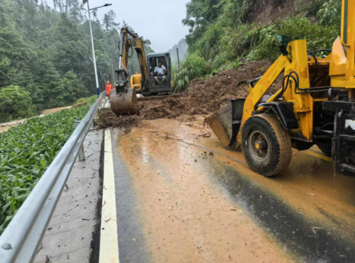 5月22日,桃源县境内普降大到暴雨,致使多处公路山体塌方、树木倒伏、公路积水,给车辆出行带来极大的不便和安全隐患。根据桃源县启动防汛Ⅲ级应急响应要求,桃源县公路建设养护中心干部职工迅速响应,冒雨清塌方、除倒树,全力开展防汛抢险工作,保障公路安全畅通。