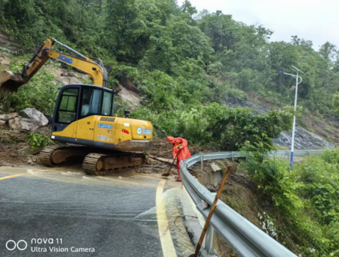 早上7点,养护人员发现S315线K145+200处理公港路段,因暴雨导致山体大面积塌方造成交通阻断。收到灾情信息后,桃源县公路建设养护中心按照应急预案,迅速组织机械和人员对塌方进行紧急处置,通过两个小时左右的紧急抢险,该路段及时恢复了畅通。