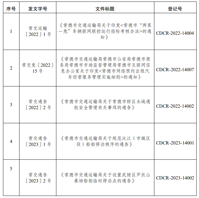 附件:1.常德市交通运输局重新公布的规范性文件目录