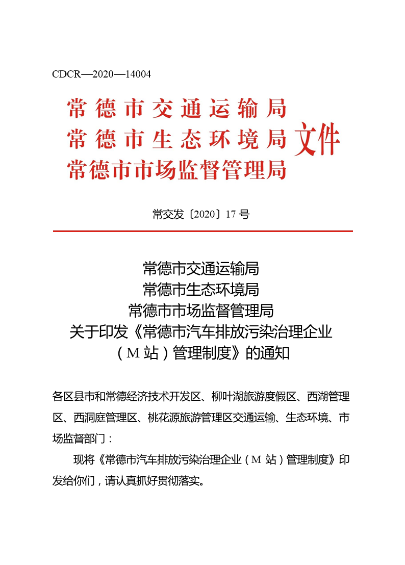 常德市交通运输局 关于印发《常德市汽车排放污染治理企业(m站)管理制度》的通知
