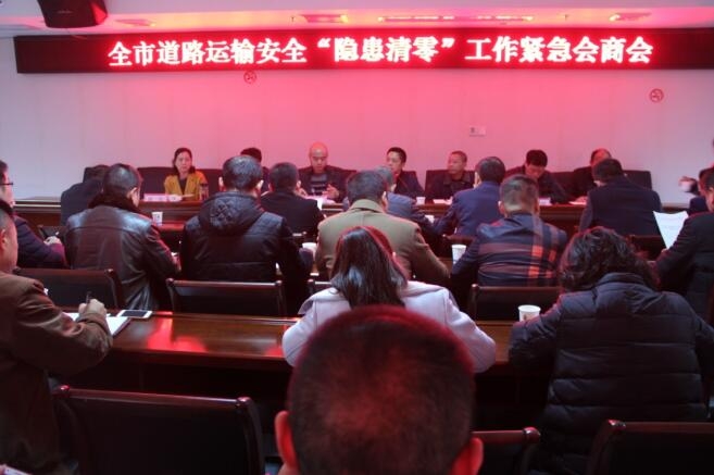 为贯彻落实省厅道路运输安全“隐患清零”行动督查方案,确保全市道路运输安全生产形势持续稳定。11月21日上午,市道路运输管理处紧急会商全市道路运输安全“隐患清零”工作,市运管处班子成员及相关科室负责人,各区县市运管机构主要负责人、分管安全工作负责人,客货运输企业主要负责人,“两客一危”车辆动态监控平台公司负责人参加会议。