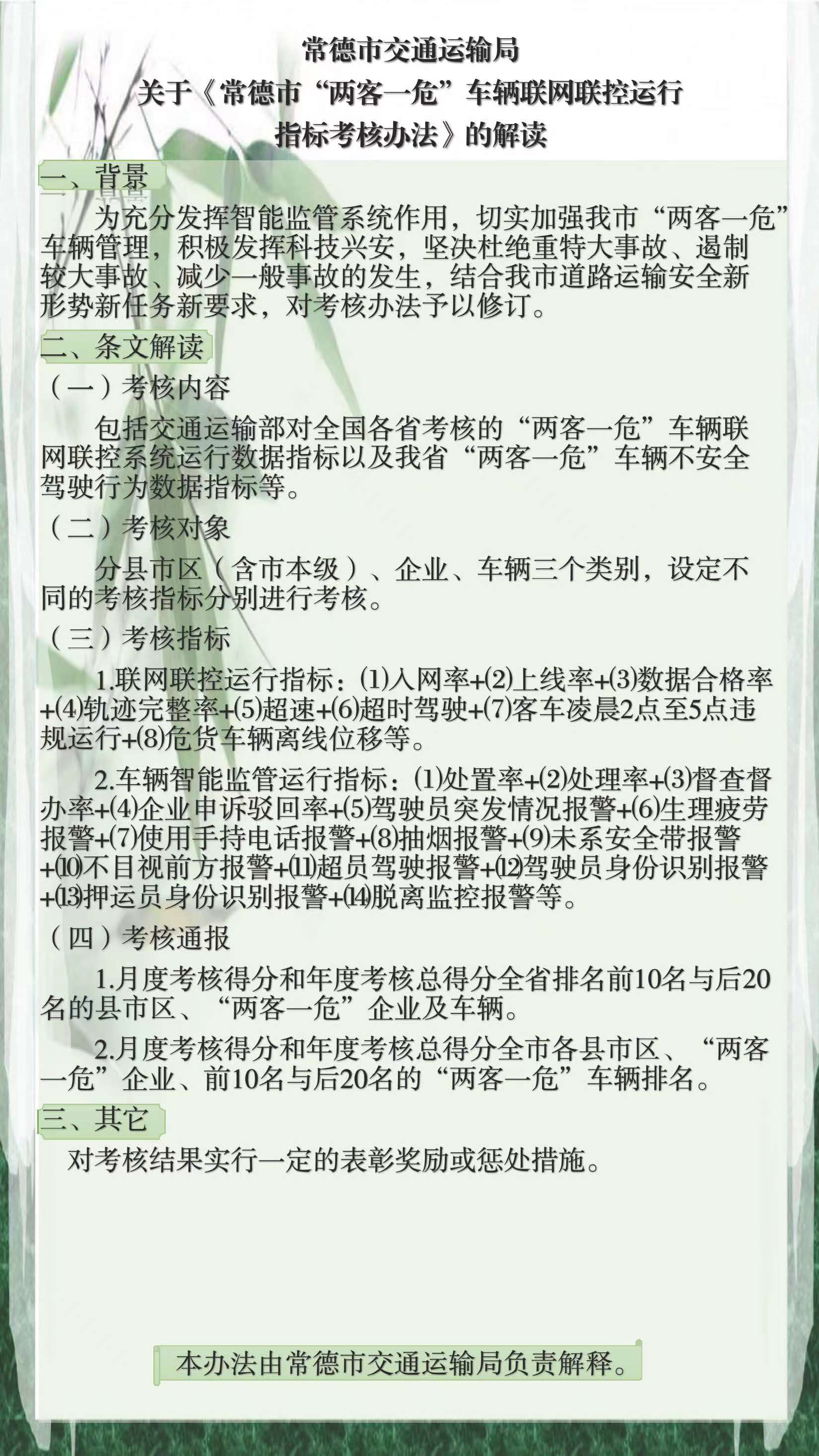常德市交通运输局关于《常德市“两客一危”车辆联网联控运行指标考核办法》的政策解读