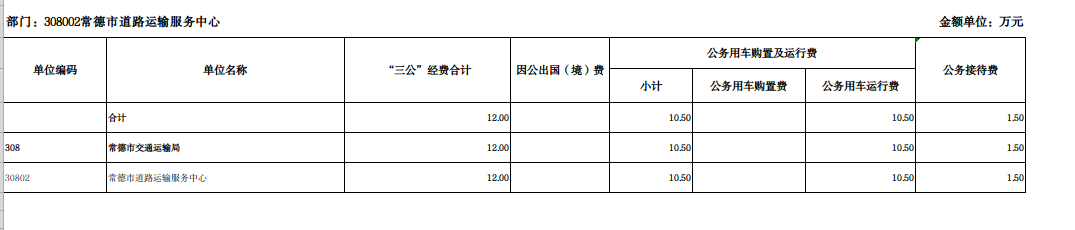 常德市道路运输服务中心一般公共预算“三公”经费支出表
