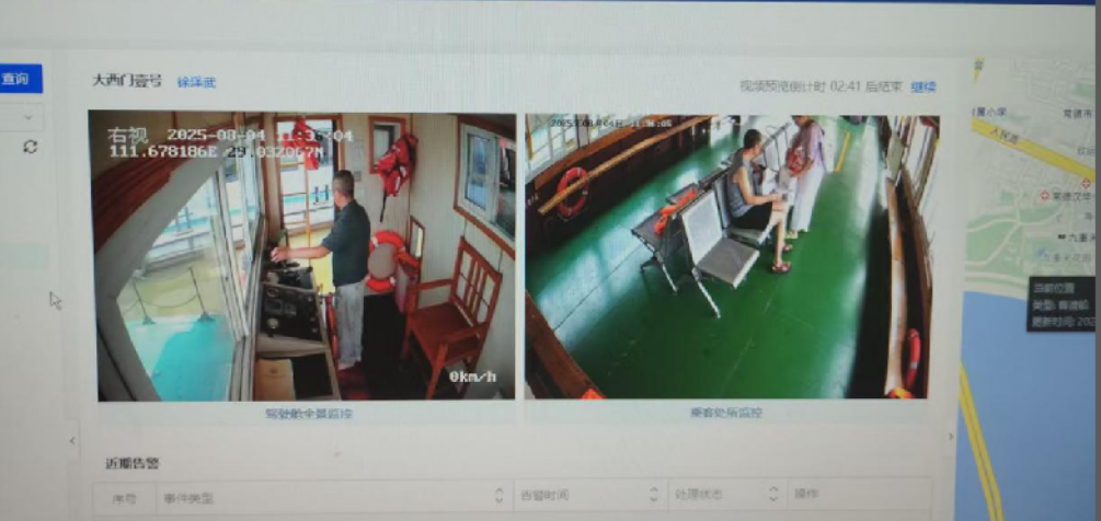 在往返于沅江两岸的大西门轮渡上,新安装的智能监控终端“安全电子眼”正闪烁着指示灯。这套设备如同不知疲倦的“电子安全员”,实时监控着船舶的驾驶室和船舱等关键区域。与普通监控不同的是,该系统具备前端视频AI识别和自动告警功能,监控到的数据会通过管理平台精准推送至主管部门,实现“发现—预警—处置”的闭环管理。